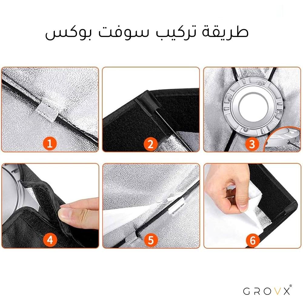 - قماش عالي الجودة : يضمن إضاءة ناعمة ومتوازنة على الموضوع مع عاكس داخلي بلون السيلفر